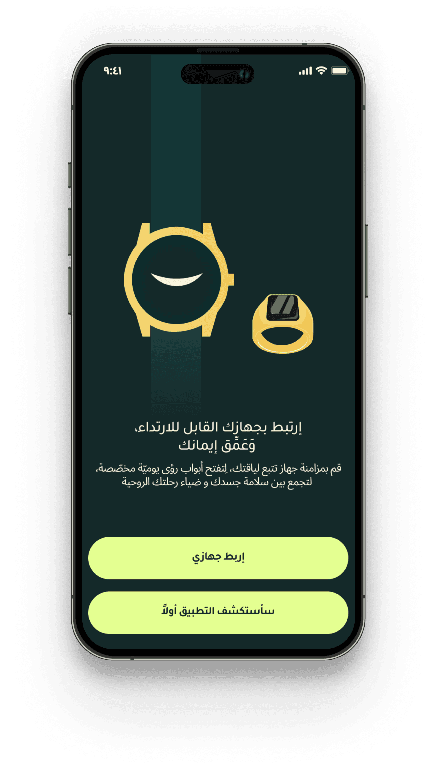 نظامُنا المتفرِّد، الذي ينتظر براءةَ اختراعٍ، ينسجُ خيوطَ رحلتك الروحيّة بعافيتك الجسديّة، في تناغمٍ يُعيد للروح والجسد اتّزانهما. احصل على دعم إرشادي للصلاتك، واطّلع على تحليلات فورية لنومك وصحة قلبك وغيرها من بيانات اللياقة.